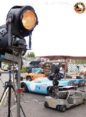 Une mise en scène avec 2 voitures travelling des projecteurs, des caméras et une véritable Porsche 917 aux célèbres couleurs Gulf a été réalisée.